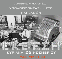 Το Πρότυπο ΓΕΛ Βαρβακείου Σχολής σε συνεργασία με το Ελληνικό Μουσείο Πληροφορικής σας προσκαλεί στην Έκθεση Μηχανικών Αριθομηχανών την Κυριακή 26 Νοεμβρίου, ώρα 17:00 - 21:00 στον χώρο του Μουσείου. Οι συμμετέχοντες μαθητές θα παρουσιάσουν μια αναδρομή στον χώρο των αριθμομηχανών και των ηλεκτρονικών υπολογιστών του παρελθόντος και θα δώσουν στους επισκέπτες τη δυνατότητα όχι μόνο να παρατηρήσουν τον τρόπο λειτουργίας τους αλλά και να πειραματιστούν με μηχανικές και ηλεκτρονικές συσκευές του παρελθόντος.