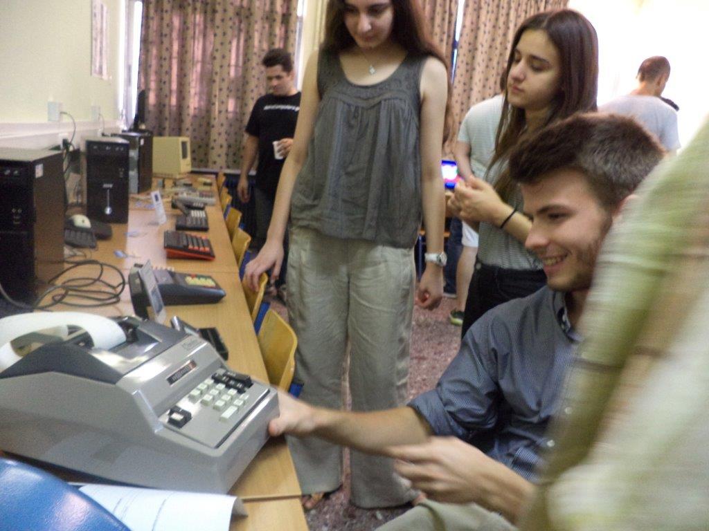 Την Κυριακή 26 Ιουνίου και ώρα 6:30 μ.μ. στην αίθουσα του εργαστηρίου Πληροφορικής του σχολείου διοργανώθηκε διαδραστική Έκθεση με Μηχανικές Αριθμητικές Μηχανές που κατασκευάστηκαν μεταξύ 1940 και 1965 καθώς και με Παλαιούς Ηλεκτρονικούς Υπολογιστές. Οι μαθητές Ορέστης Γιαννούκος και Γιώργος Γιαπιτζάκης παρουσίασαν μια αναδρομή στο χώρο των μηχανικών αριθμητικών μηχανών και έδωσαν στους επισκέπτες τη δυνατότητα όχι μόνο να παρατηρήσουν τον τρόπο λειτουργίας τους αλλά και να πειραματιστούν εκτελώντας μαθηματικούς υπολογισμούς. Τα εκθέματα της έκθεση εμπλουτίστηκαν με παλαιούς υπολογιστές, κονσόλες καθώς και άλλα υλικά (αποθηκευτικά μέσα, περιοδικά, επεξεργαστές κλπ) από τα μέλη της ομάδας RetroComputers.Gr